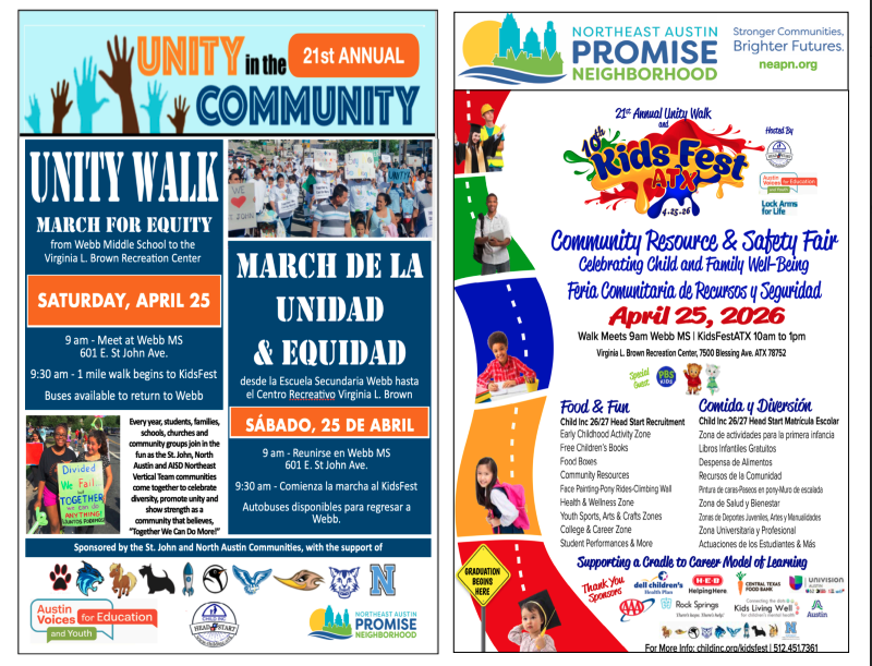 10th Annual KidsFestATX and 21st Annual Unity Walk, taking place on Saturday, April 25, 2026.
