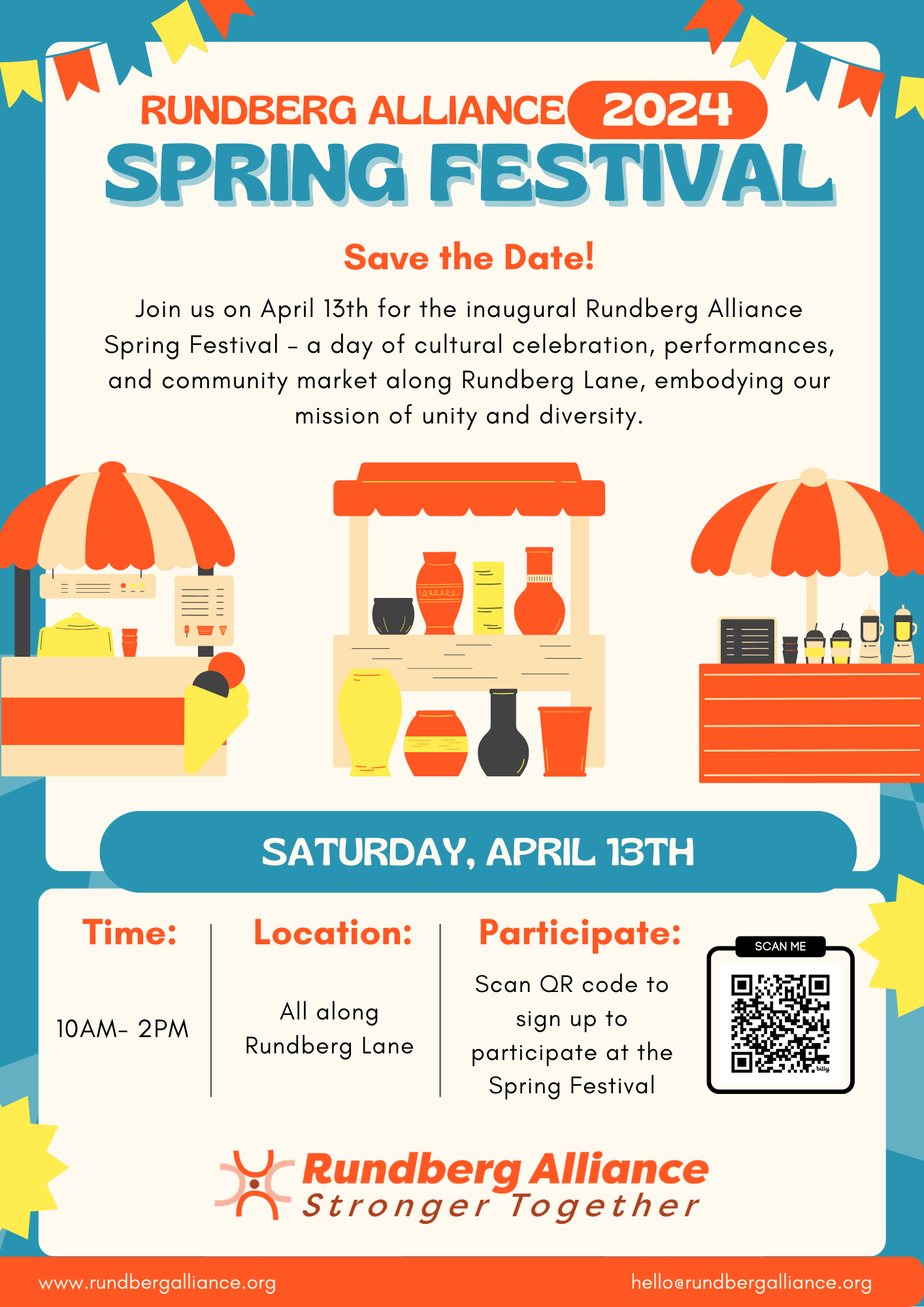 Join the first annual Rundberg Alliance Spring Festival on April 13th, 2024, from 10 am - 2 pm. Celebrate our community's diversity with performances, a Market Day, and Makers Fair along Rundberg Lane. A day to unite, learn, and foster pride in the Rundberg community.
